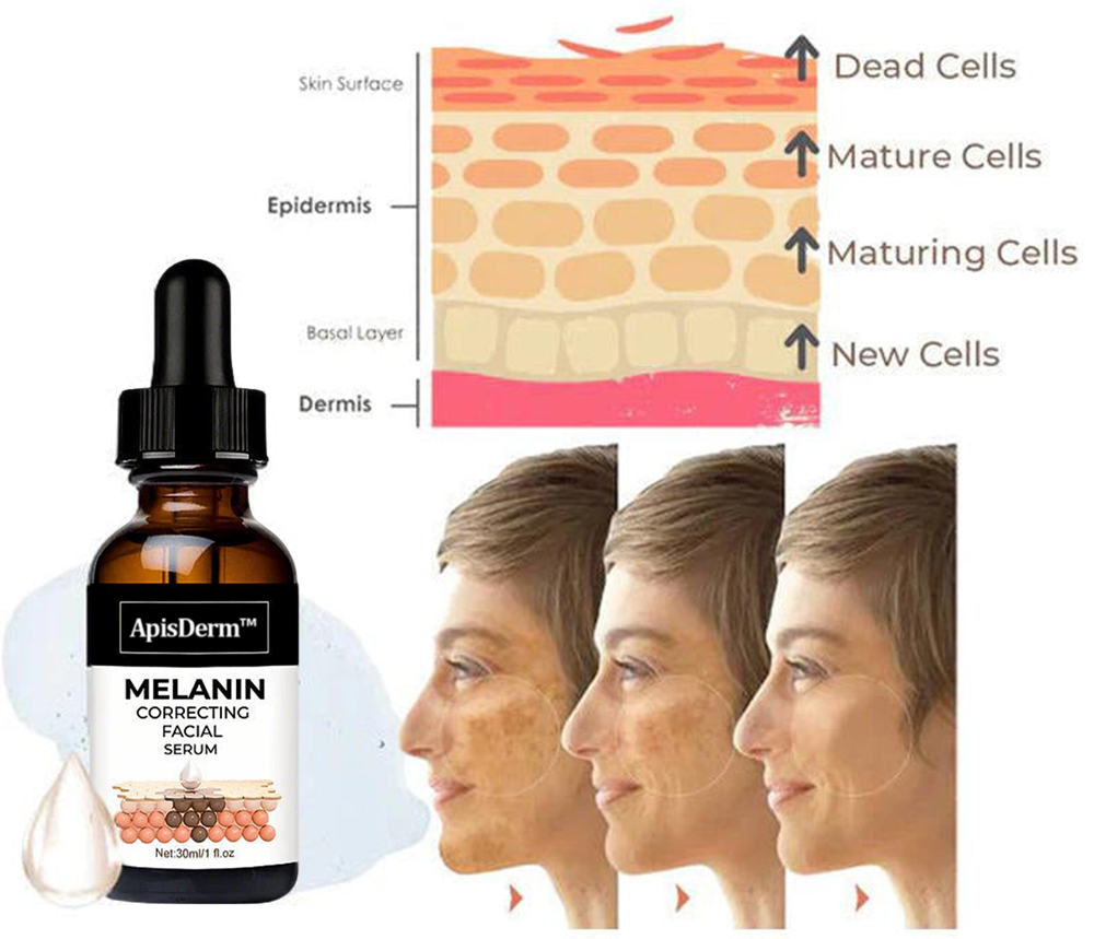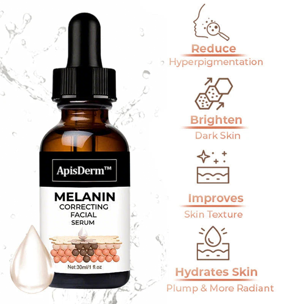 The ApisDerm™ Melanin Correcting Facial Serum targets the skin's excessive melanin synthesis, which results in hyperpigmentation and dark patches. These serums have potent chemicals that work to control melanin synthesis, lighten existing dark spots, and stop the development of new ones.