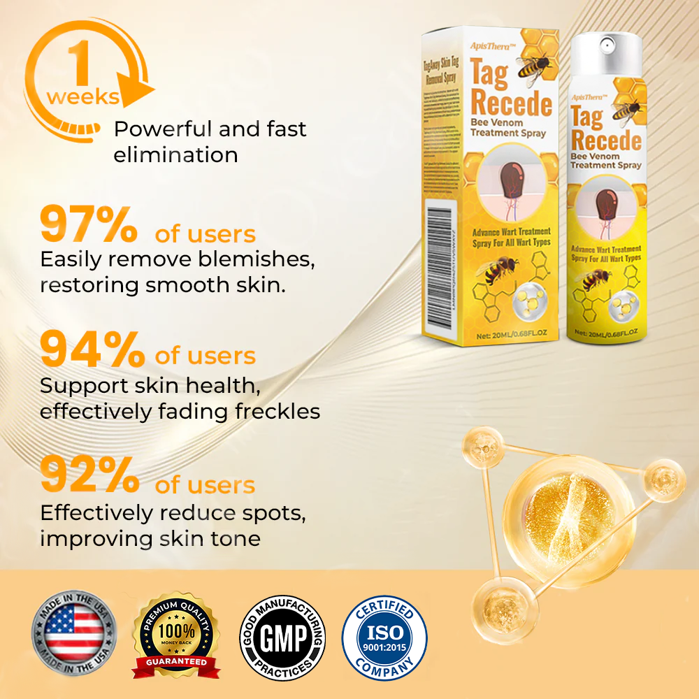 The TagRecede Treatment Spray is the solution harness the potent properties of bee venom to effectively target various skin imperfections, including skin tags, moles, warts, and spots. Infused with active compounds extracted from bee venom, this advanced formula to break down and gently removing unwanted growths.