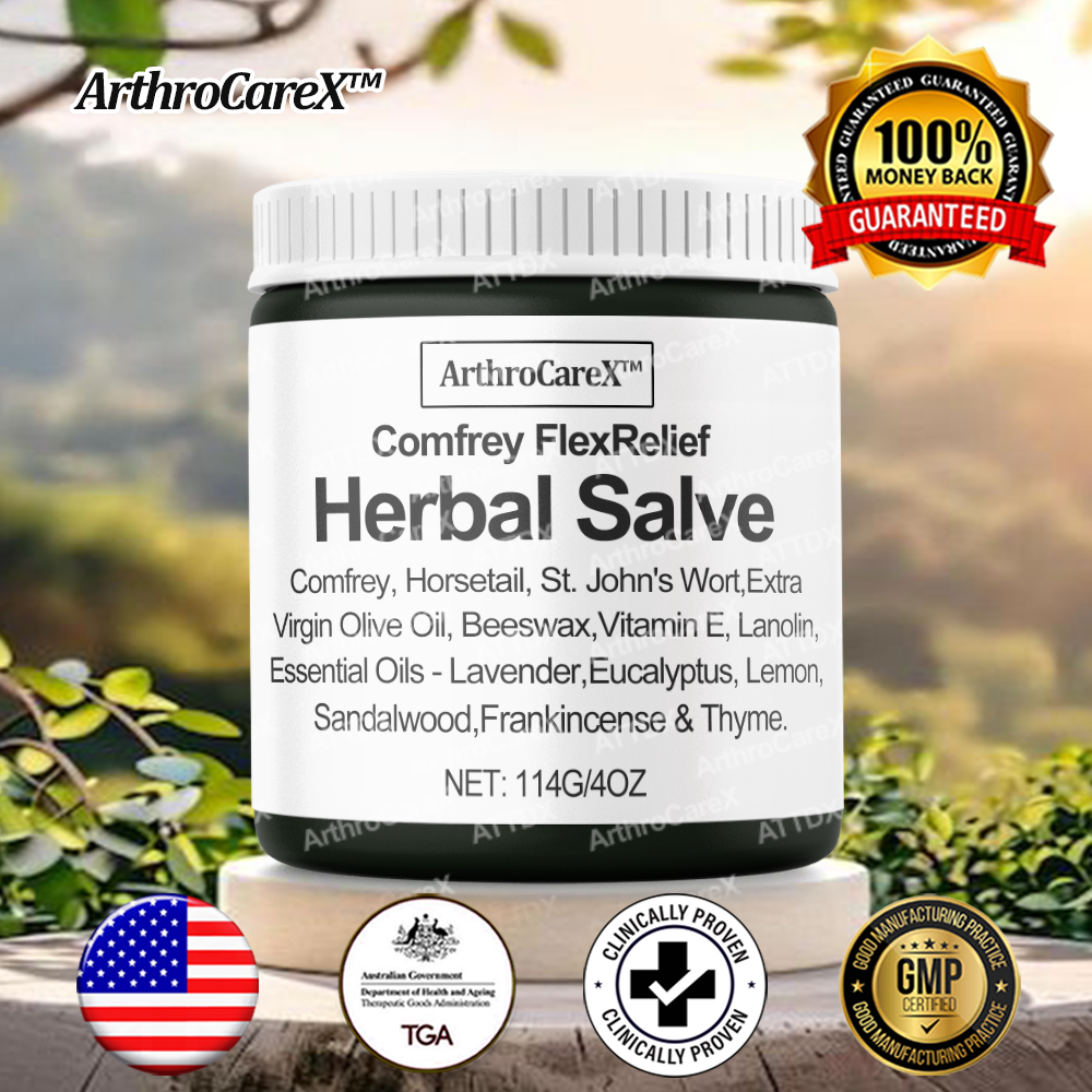 Rediscover comfort and mobility with ArthroCareX™ Comfrey FlexRelief Herbal Salve, your ultimate solution for soothing relief and enhanced joint flexibility.