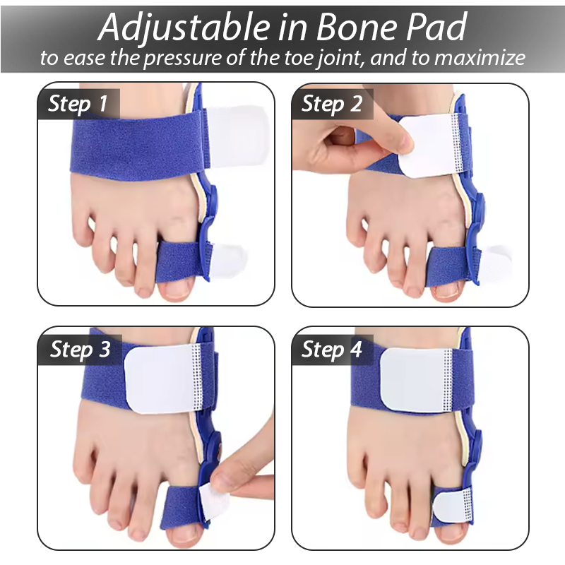 This innovative bunion corrector applies a 3-point pressure system to gently correct hallux valgus deformities. It helps straighten the big toe while reducing pain and stress in the affected area. The adjustable bone pad ensures even pressure distribution, maximizing comfort and protection with every step.