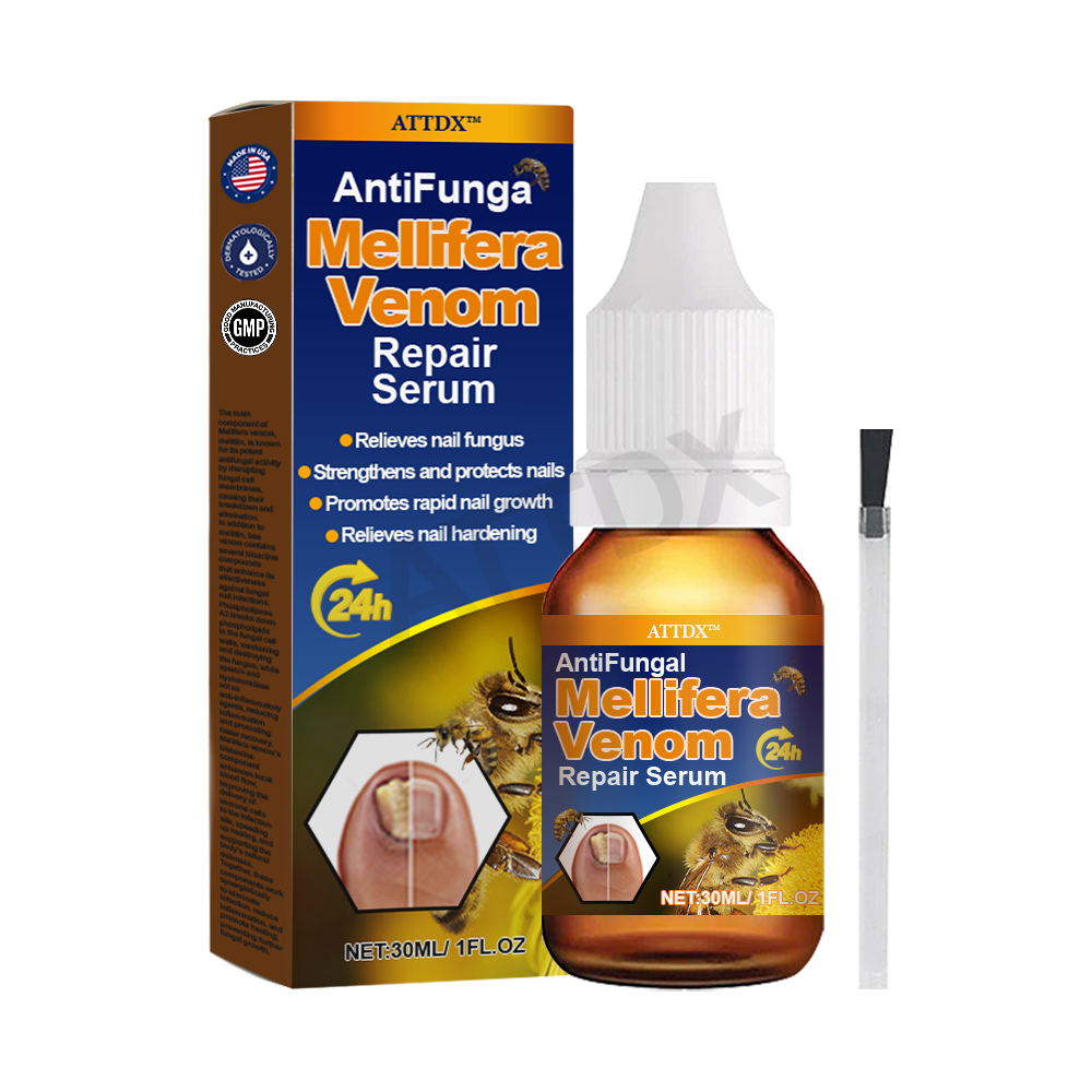 ATTDX™ AntiFungal Mellifera Venom Repair Serum harnesses the powerful benefits of its carefully selected ingredients to effectively combat fungal infections. Mellifera venom extract is known for its potent antifungal properties, disrupting fungal cell membranes to promote healing. Castor oil deeply nourishes and hydrates the skin, creating an optimal environment for recovery while soothing irritation. Tea tree oil adds additional antifungal and antibacterial benefits, helping to reduce inflammation and prevent further infections. Tolnaftate works as a well-known antifungal agent, effectively targeting and eliminating stubborn fungi. Salicylic acid aids in exfoliating dead skin cells and unclogging pores, enhancing overall skin texture and allowing other ingredients to penetrate more effectively.