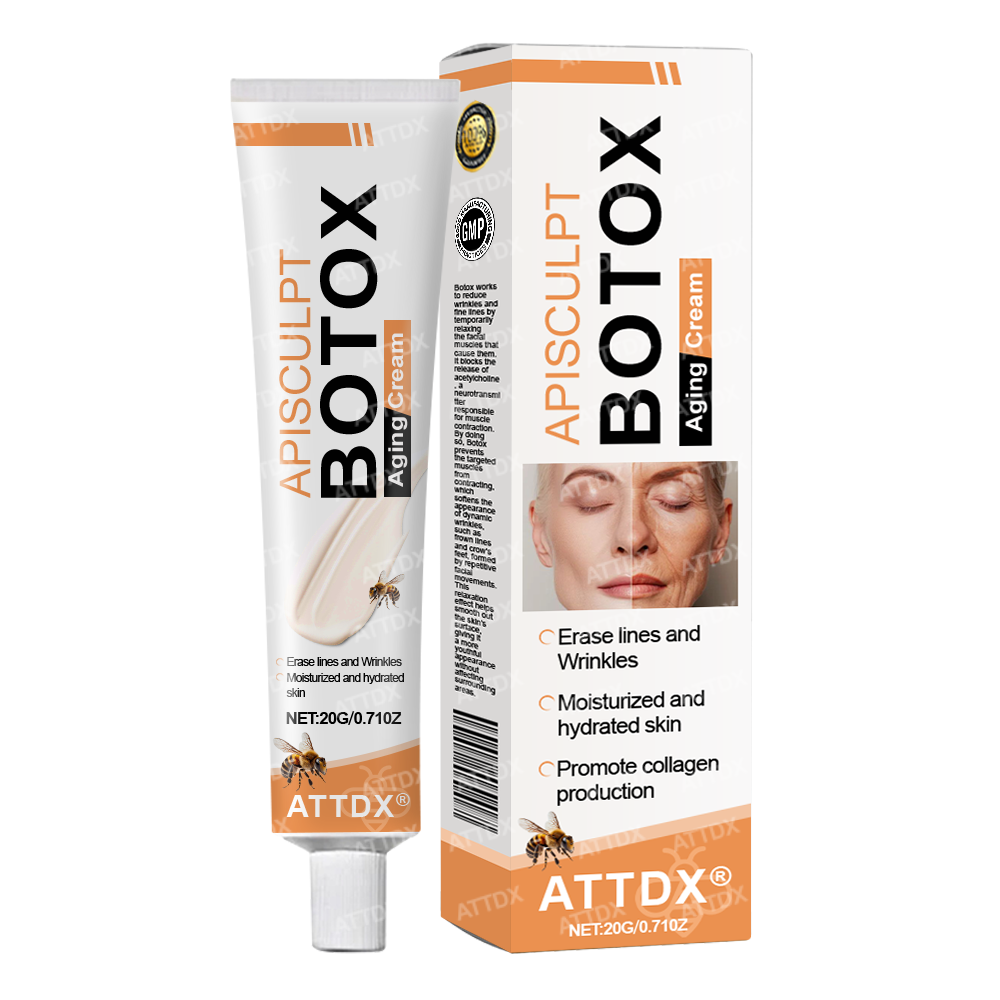 ATTDX® ApiSculpt BotoxAging Cream uses advanced Botox technology to temporarily relax facial muscles, reducing the appearance of wrinkles. By blocking acetylcholine release, it smooths dynamic wrinkles like frown lines and crow's feet, leaving your skin revitalized. Enjoy a youthful glow with reduced fine lines while preserving natural facial movement.