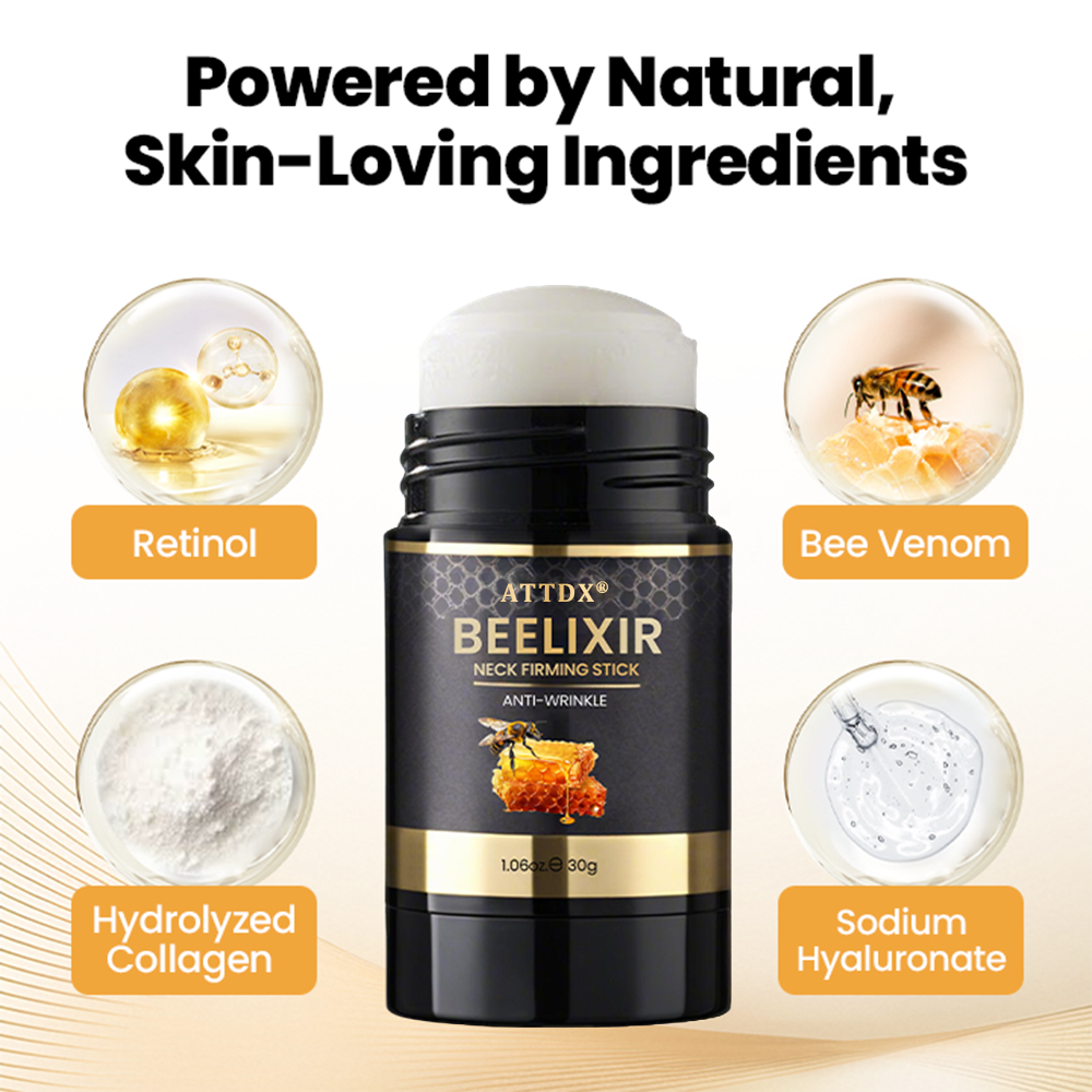 ATTDX® BeeLixir Neck Firming Stick visibly improves wrinkles, sagging, and elasticity without harsh chemicals or lengthy treatments.