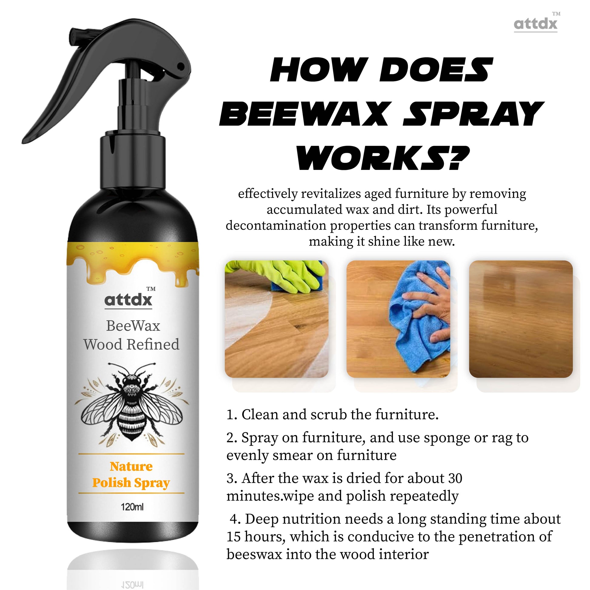 Say goodbye to laborious furniture polishing! ATTDX BeeWax WoodRefinedNaturePolish Spray effortlessly revitalizes all wood surfaces, leaving cabinets, floors, and furniture with an exquisite, lasting brilliance in just a few easy steps.