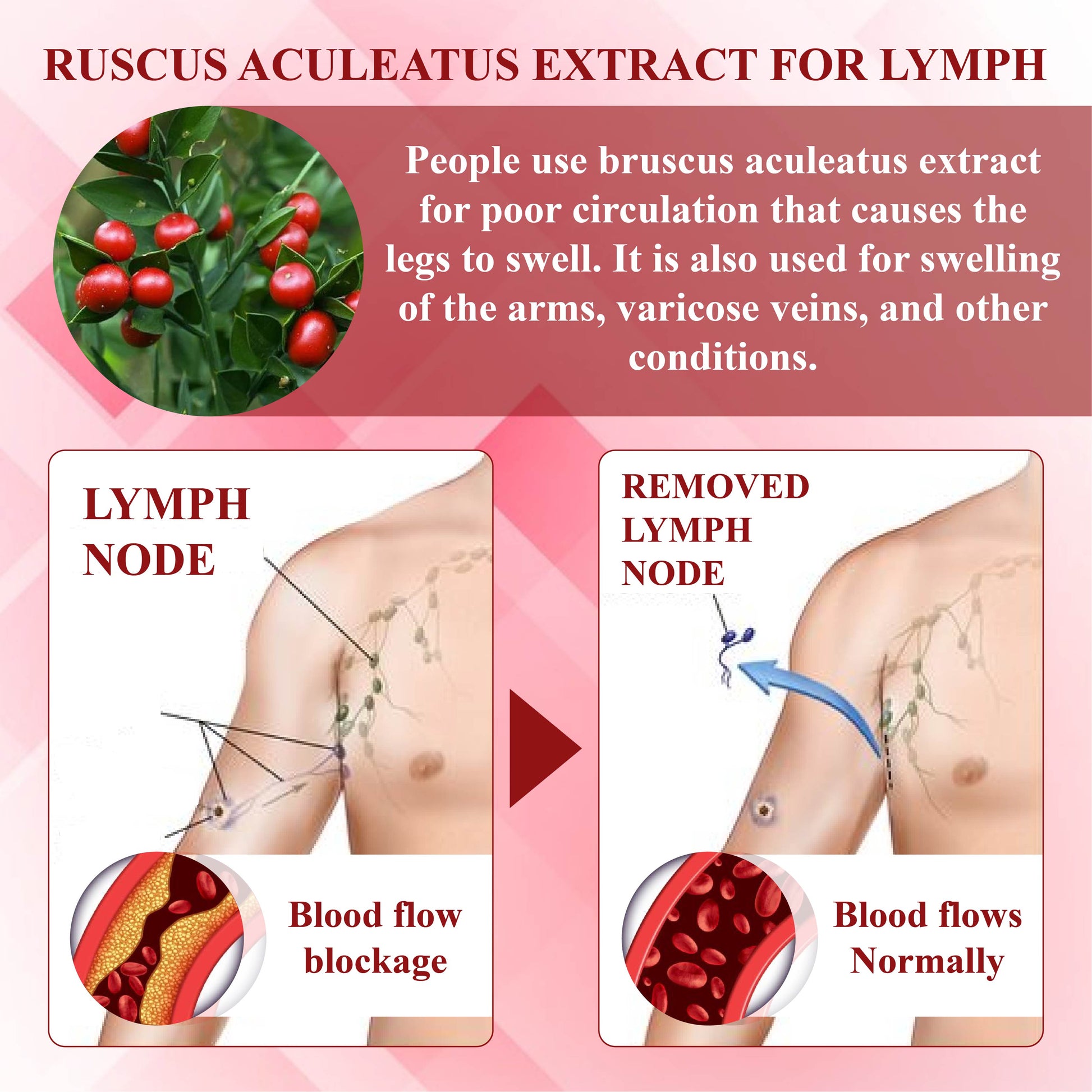 ATTDX™ EdemaSupport Lymphatic Drainage Massage Cream features Ruscus aculeatus Extract, a powerful ingredient known for its ability to relieve leg swelling and discomfort. It promotes improved blood circulation and reduces fluid retention, making it effective in addressing both edema and lymphatic issues. By strengthening venous tone and minimizing inflammation, Ruscus aculeatus Extract offers a gentle and natural solution for managing swelling, while also supporting lymphatic drainage, providing relief with fewer systemic side effects.