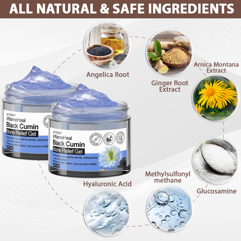 - 1x ATTDX® InflameHeal Black Cumin Bone Relief Gel (50g, made in USA)