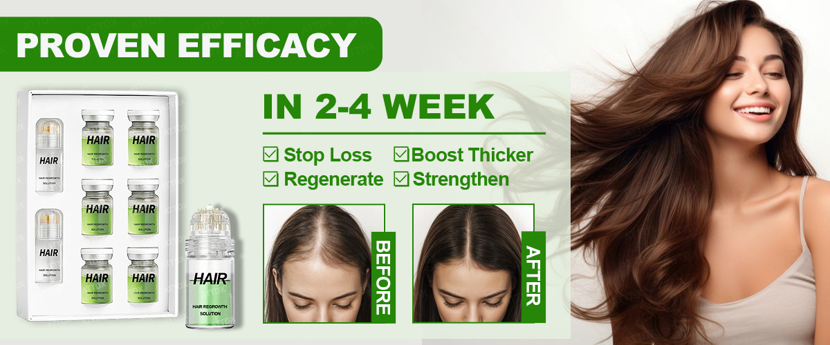 ATTDX® LadyGro Kit focuses on revitalizing weakened follicles by minimizing excess DHT buildup at the roots. With its gentle microneedle system, the essence penetrates deeply to nourish the scalp, reduce shedding quickly and reveal visibly fuller and healthier strands in just a short time.