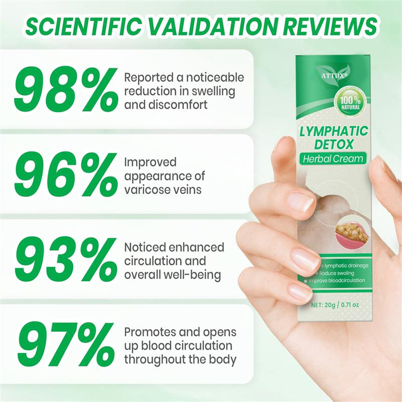 ATTDX® Lymphatic Detox Herbal Cream is specially formulated to promote lymphatic flow and support the body's natural detox process. It helps reduce fluid buildup, soothes swelling, and improves circulation for long-term relief.