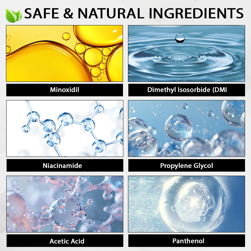 ATTDX® Max Absorb MinoxidilSerum Dermaroller Kit combines key ingredients that work together to promote hair growth and scalp health. Minoxidil stimulates hair follicles, encouraging hair regrowth and improving thickness. Dimethyl Isosorbide (DMI) enhances the absorption of active ingredients, ensuring deeper penetration for better results. Niacinamide improves scalp circulation, while Panthenol nourishes and hydrates the scalp, supporting overall hair health.