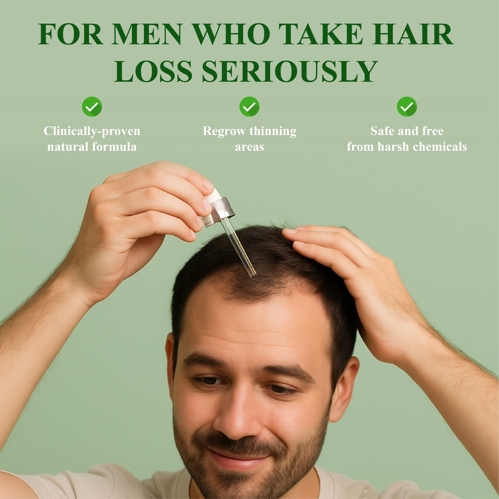 Every day, DHT buildup, poor circulation, and nutrient loss weaken the roots, leaving hair thinner, weaker, and more prone to shedding.