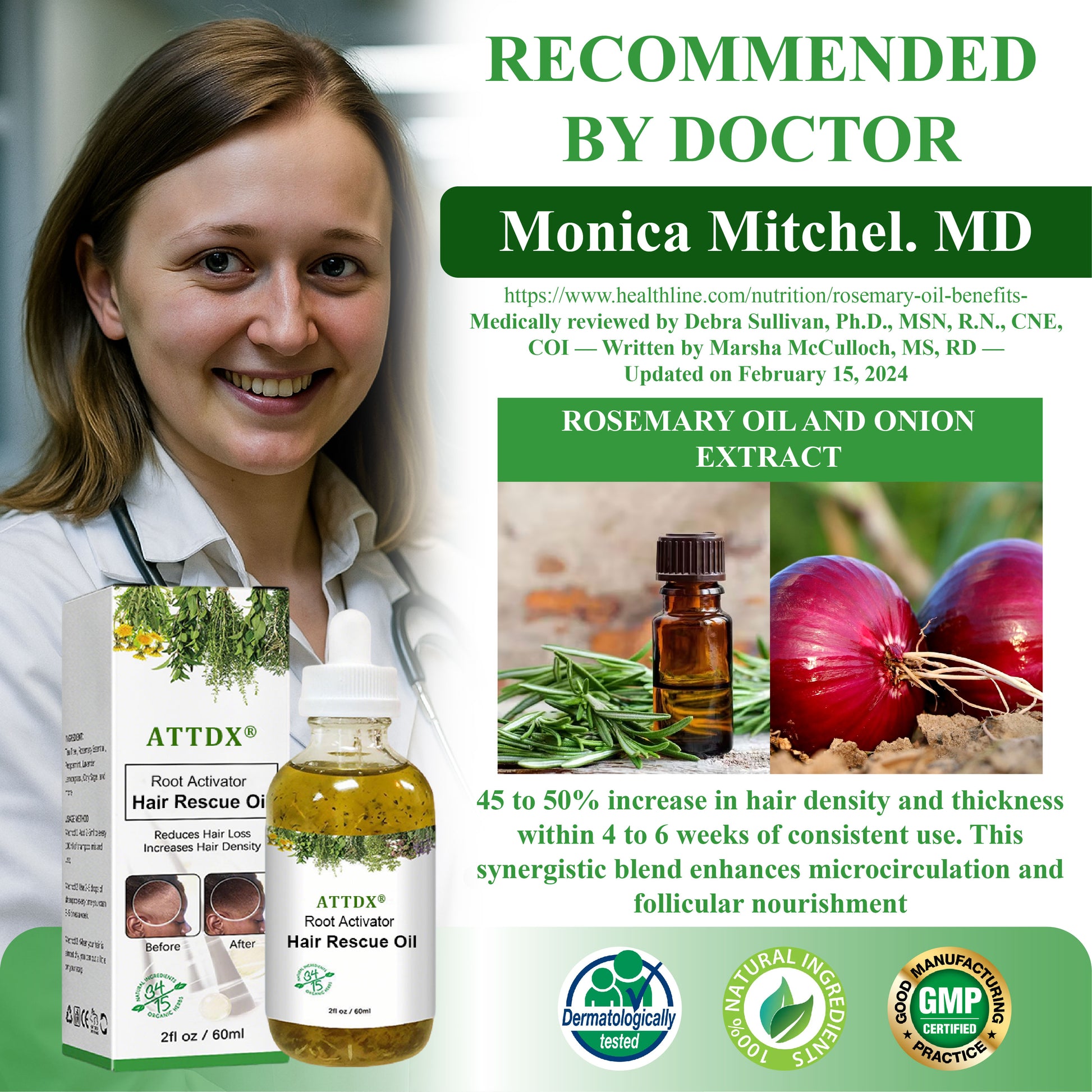 ATTDX® Root Activator Hair Rescue Oil is infused with a restorative blend of natural ingredients that work together to nourish the scalp, strengthen roots, and promote healthier and fuller hair.