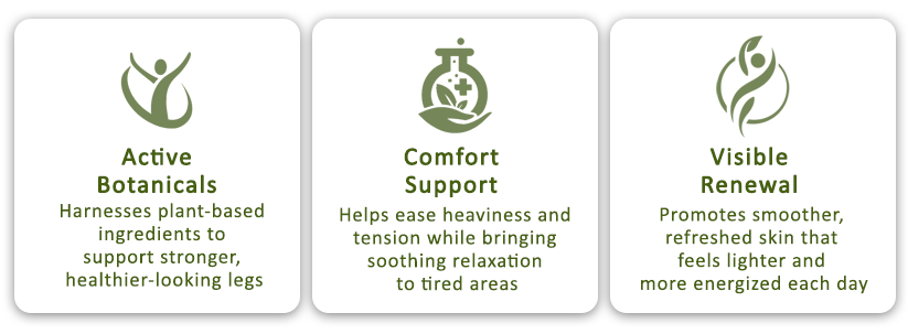 Stimulates circulation with a warming effect that refreshes and revitalizes tired, heavy legs.