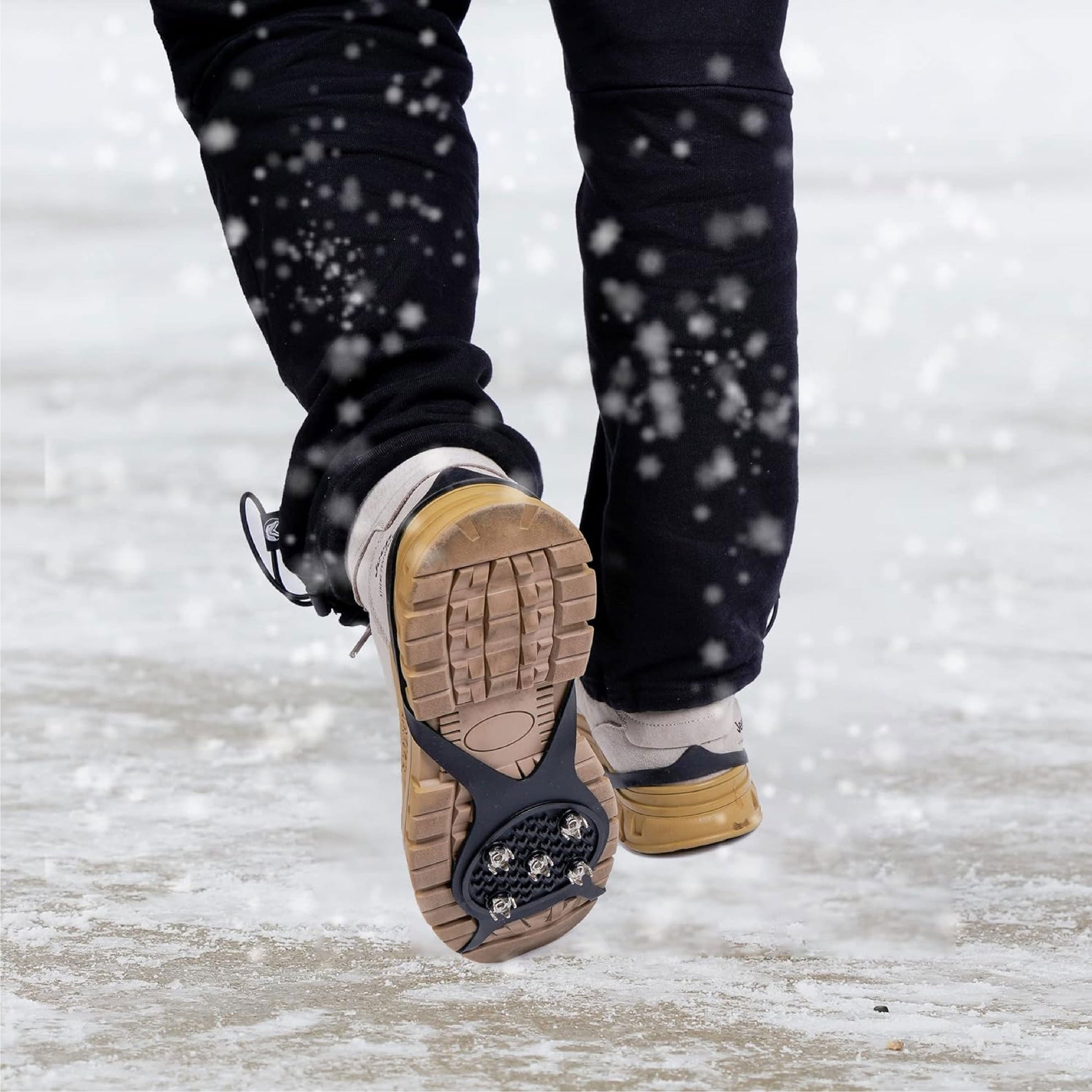 Perfect for anyone navigating cold-weather conditions, the ComfortCornerUs™ FrostGrip Universal Safety Traction Cleats are built for practicality, convenience, and peace of mind. The stretchable rubber harness ensures a snug fit for different shoe sizes, while the sharp steel spikes grip firmly to prevent slips and falls. Compact and portable, they can be carried in a bag or glove compartment for quick access when icy conditions appear. Ideal for adults, seniors, and outdoor enthusiasts, these cleats provide reliable traction and confidence in winter weather. Walk with assurance, maintain your balance, and enjoy outdoor activities even in the harshest icy conditions with these innovative safety cleats.