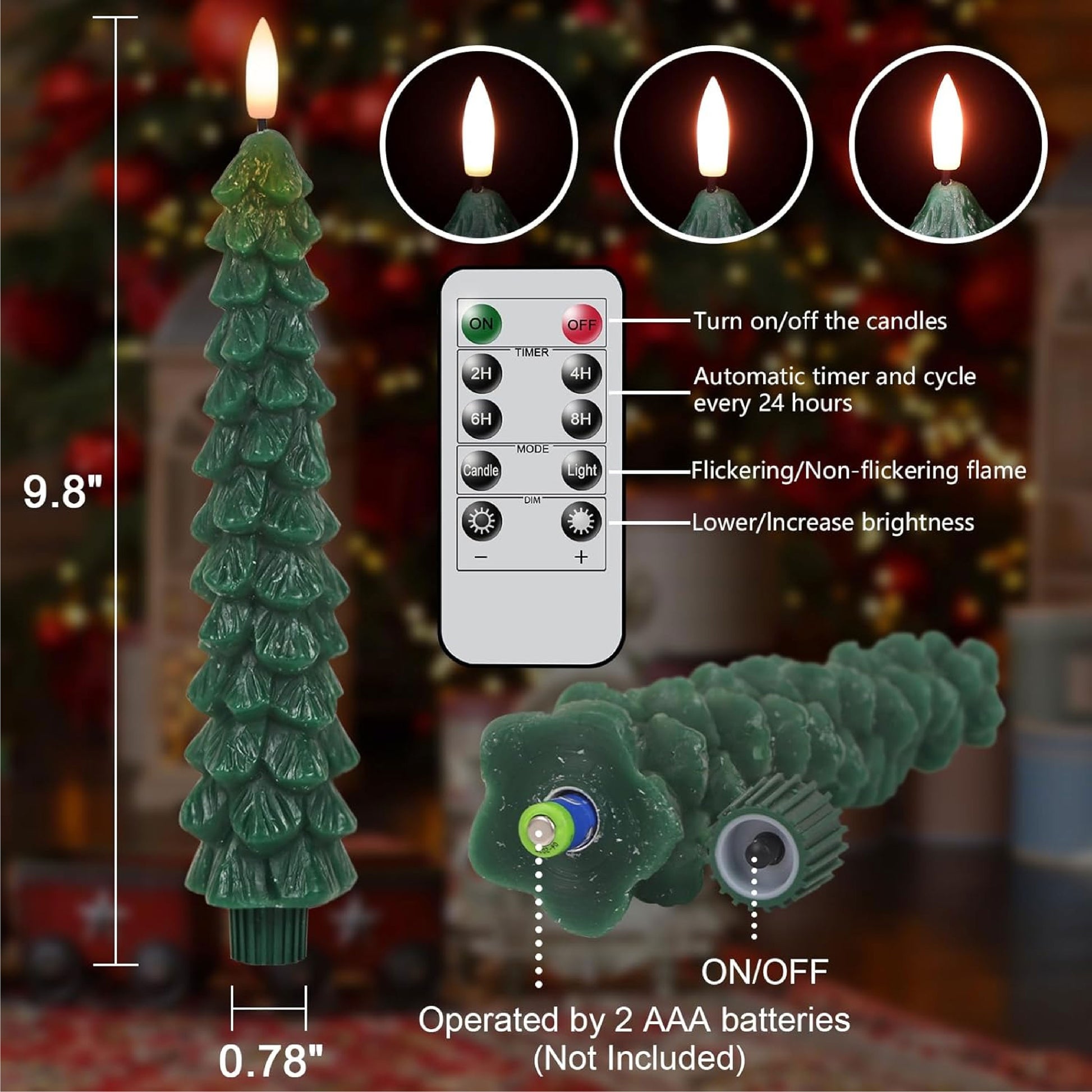 ComfortCornerUs⢠GlowLite Flameless Christmas Taper Candles are crafted from premium real wax and styled with lifelike Christmas tree leaves for a festive touch. Their 3D flickering flame glows just like a real one, bringing a cozy, heartwarming ambiance to any space. Itās elegance, charm, and Christmas spirit all rolled into one perfect taper.