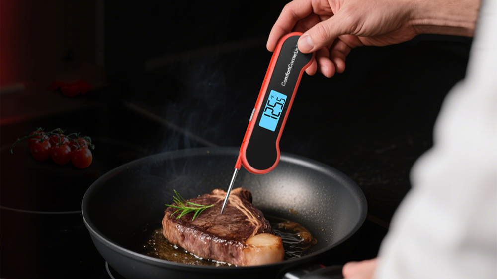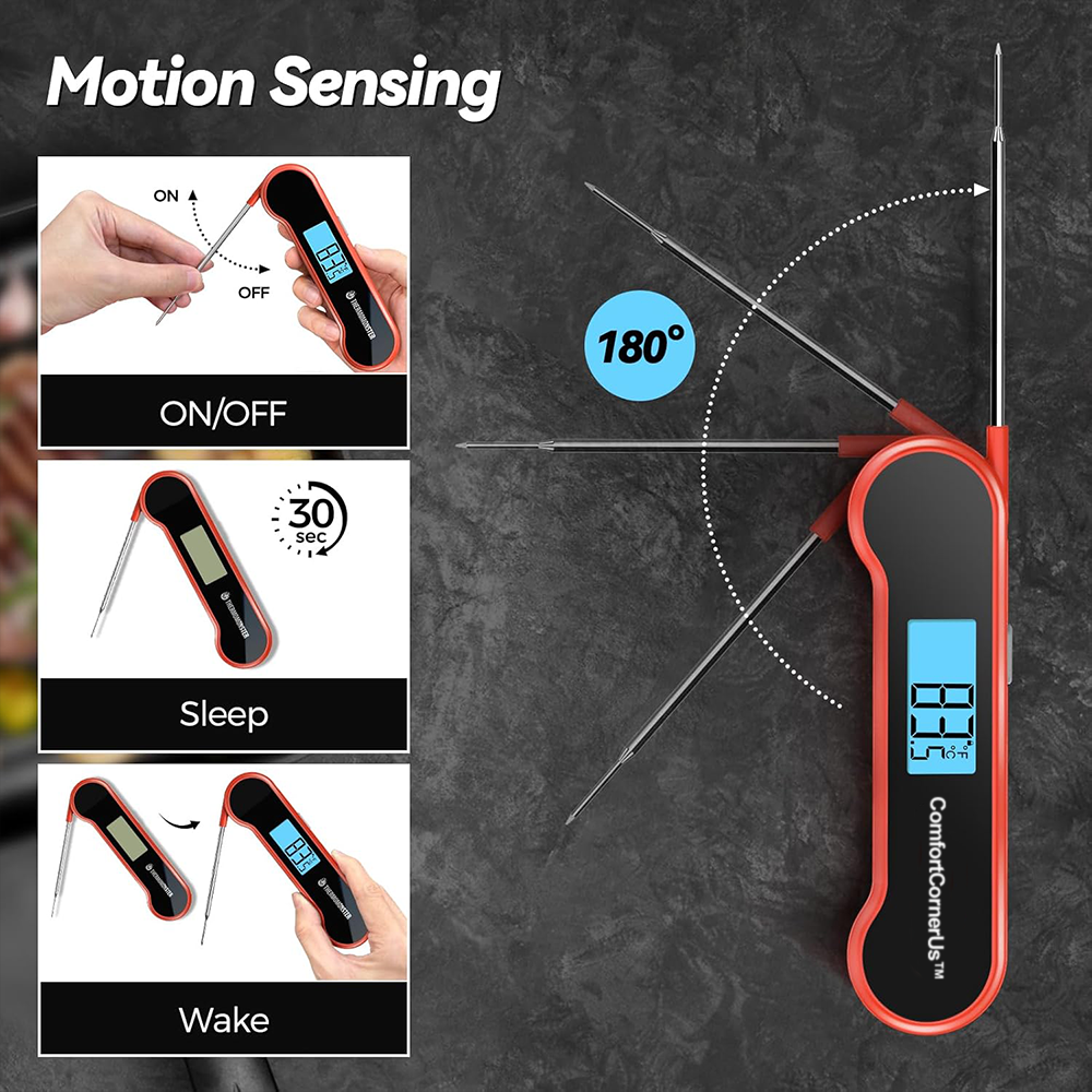 Cook with confidence using this ultra-fast, high-precision meat thermometer. Featuring a 0.5-second reading time, waterproof design, motion-sensing wake, and auto-flip LCD, it delivers accuracy, convenience, and durability for grilling and cooking.