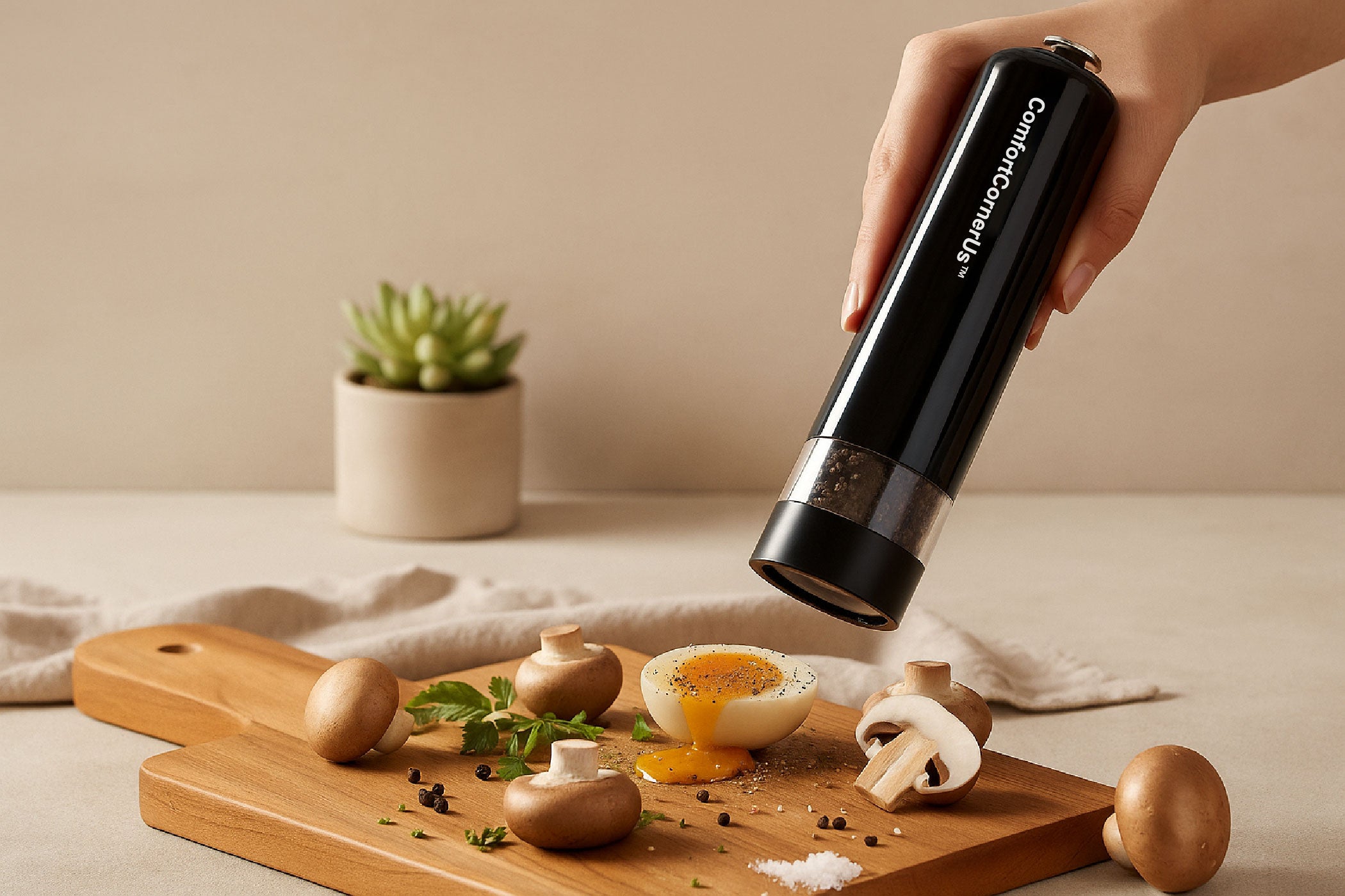 Enhance meals with this 8-inch battery-operated salt and pepper grinder set. Featuring one-touch operation, LED light, corrosion-resistant ceramic mechanism, and easy refill design, it combines convenience, durability, and precision seasoning every time.