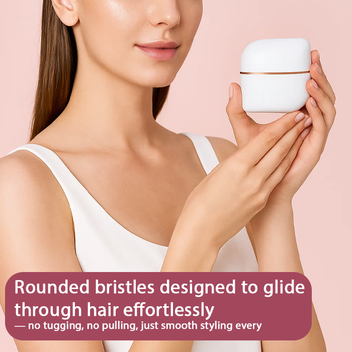 The ergonomic anti-tangle design and rounded bristles let ComfortCornerUs™ glide smoothly through your hair. It is crafted for one hand use and perfect for quick touch ups on busy days. Lightweight, cordless, and compact, it easily fits into your bag for effortless travel styling.