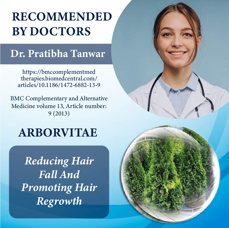 Arborvitae, also known as Thuja Occidentalis, is highly recommended for addressing hair loss due to hormonal imbalances. Last September 3, 2023, Dr. Pratibha Tanwar, a renowned dermatologist specializing in hair and scalp health, conducted a pivotal study on the effects of Arborvitae extract on male pattern baldness.