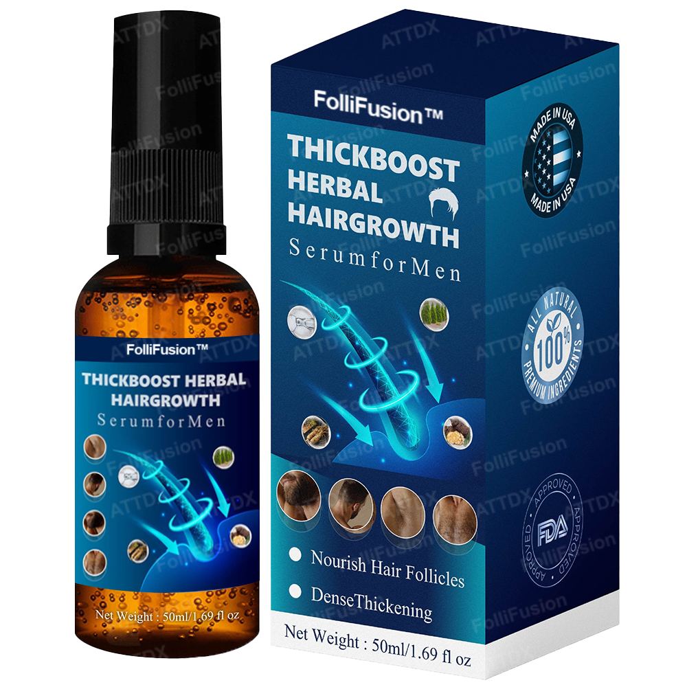 - 1x FolliFusion™ ThickBoost Herbal HairGrowth Serum for Men (50ml, made in USA)