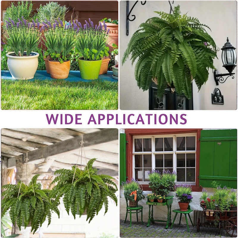 Designed with UV-resistant materials, it withstands sun exposure without fading and keeping your greenery vibrant all year round. Crafted with sturdy plastic stems and soft silk fronds, it offers a natural look and lasting durability with zero maintenance.
