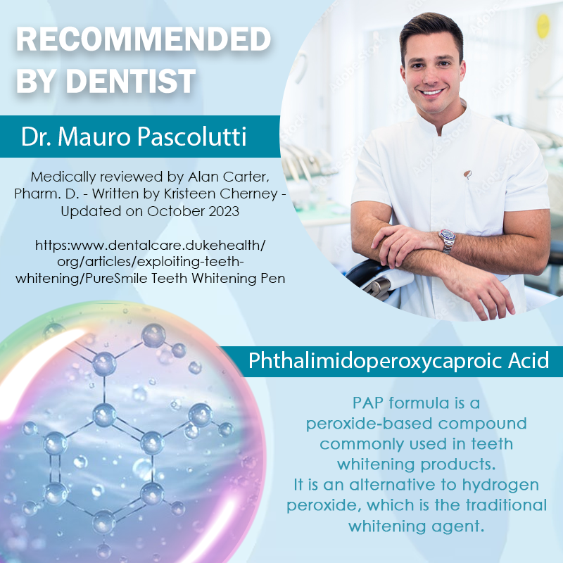 InstantSmile™ Advanced Bright Teeth Whitening Serum Pen features the PAP formula, or Phthalimidoperoxycaproic acid, a peroxide-based compound that effectively breaks down surface stains while being gentle on enamel. This innovative formula was studied and validated by Dr. Mauro Pascolutti at the American Dental Research Institute, with findings published in October 2023.