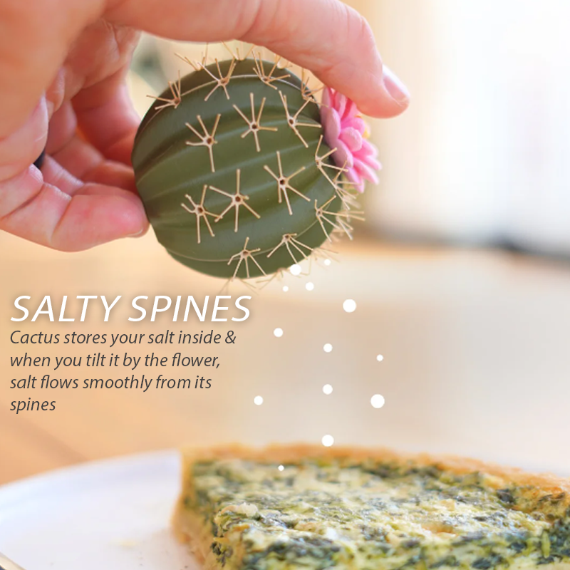Add a touch of charm and convenience to your kitchen with the KitchenHarbor™ Cactus Duo Seasoning Shaker. This clever cactus stores your salt inside and when you tilt it by the flower and the salt flows smoothly from its spines for effortless seasoning. Functional and fun, it’s the perfect blend of practicality and playful design, making every meal a little more delightful.