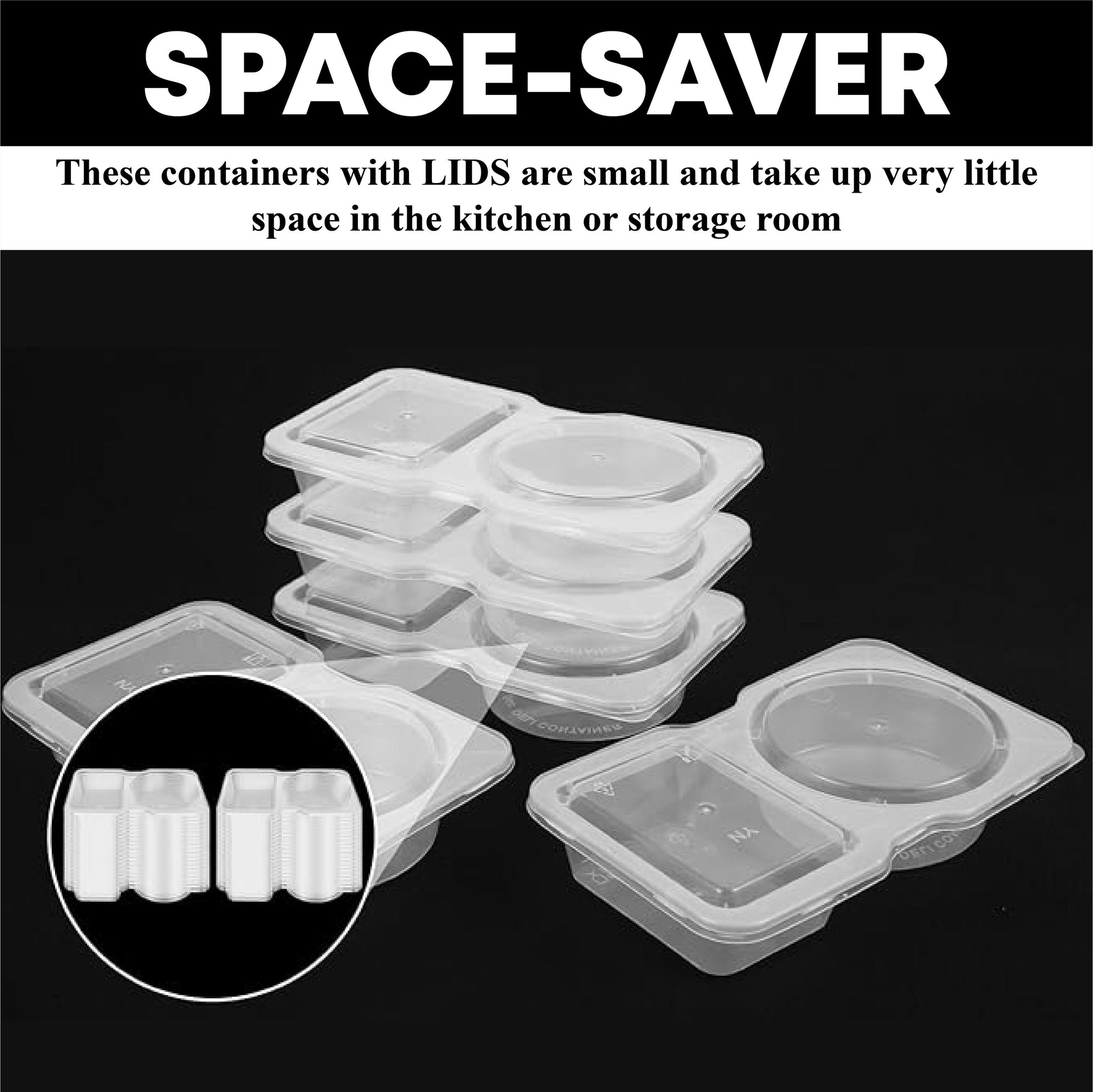 Stay organized without the hassle. KitchenHarbor™ Disposable Dual-Dish Snack Containers are streamlined for effortless organization and take up little space in your kitchen or storage room. Stack them neatly and keep your snacks fresh without the mess!