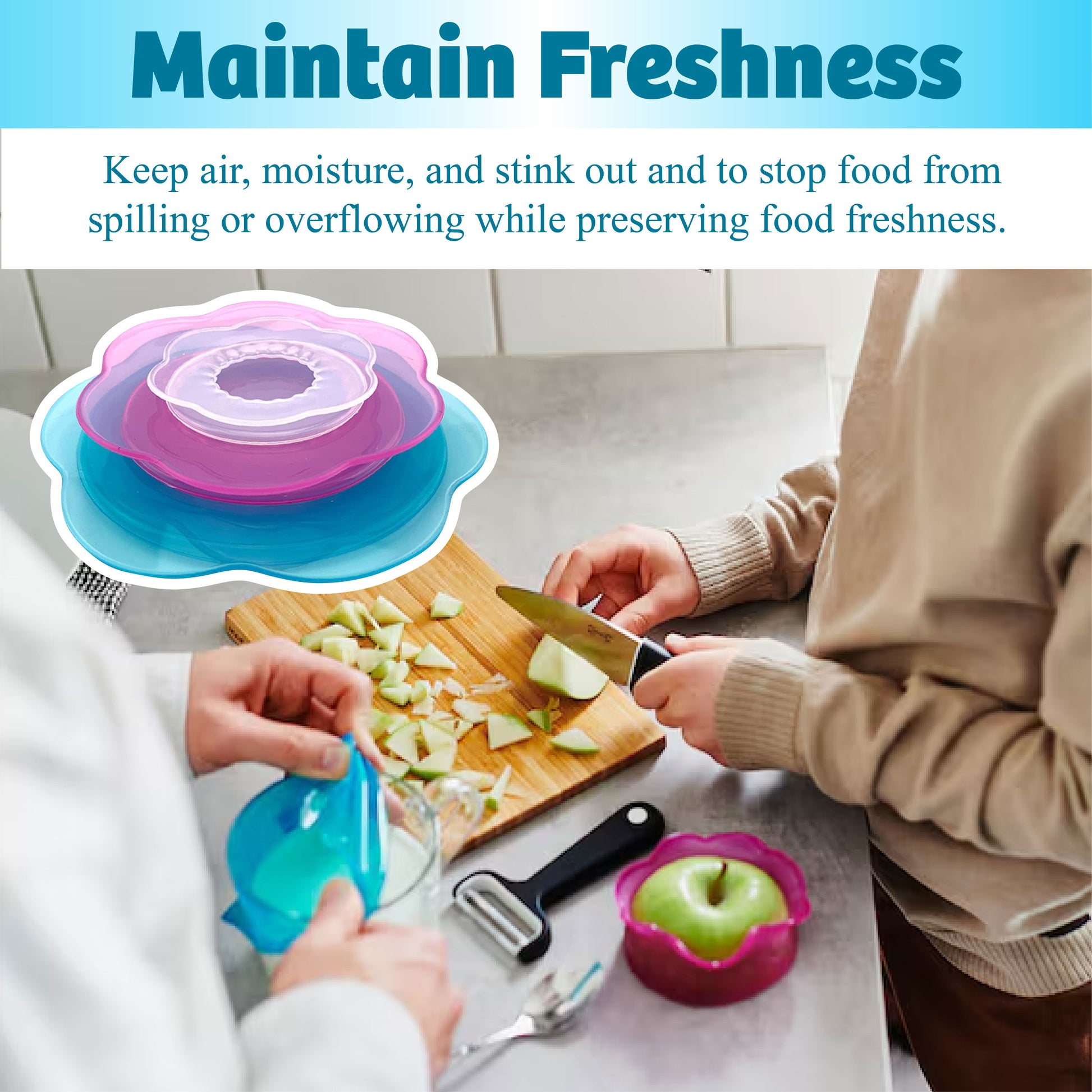 Lock in freshness effortlessly with KitchenHarbor™ Food Petal Shaped Silicone Stretch Wrap, the perfect reusable seal