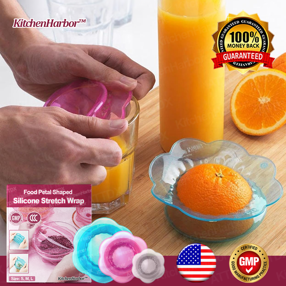 - 1x KitchenHarbor™ Food Petal Shaped Silicone Stretch Wrap (made in USA)