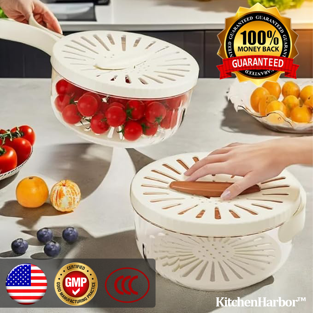 At KitchenHarbor™, we make fresh storage and easy draining effortless for a cleaner and more organized kitchen. With KitchenHarbor™ Multi-Functional Rinse and Store Basket, rinsing, draining, and storing fresh produce has never been easier. Its one-handed twist drain and ventilated design help keep fruits and vegetables fresh while reducing excess moisture and mess.