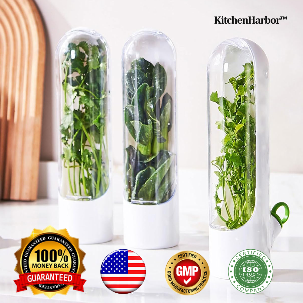 At KitchenHarbor™, we create smart storage solutions that keep your ingredients fresher and longer. With KitchenHarbor™ VeggieSaver Capsule Container, your herbs and vegetables stay fresh for with optimal humidity control. Its tall and space-saving design keeps produce upright and hydrated and preventing damage and preserving crispness.