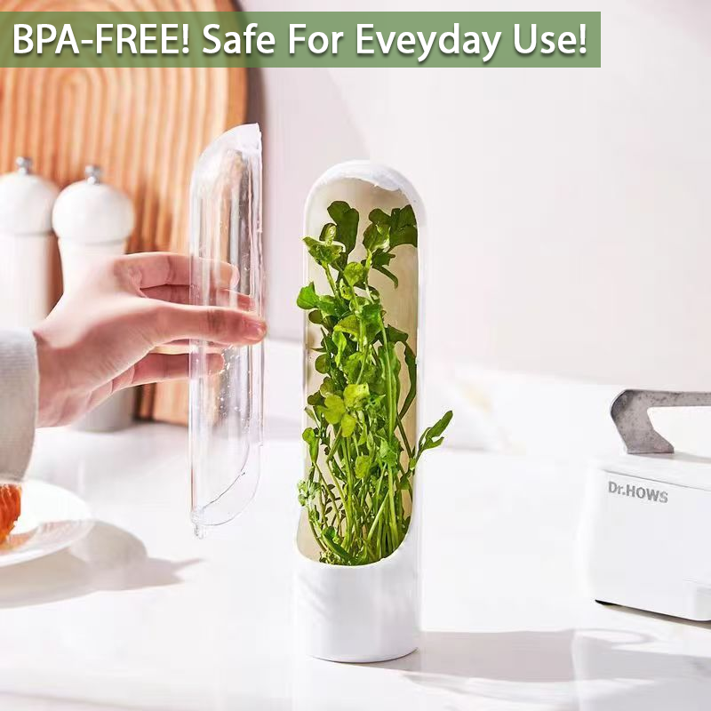 KitchenHarbor™ VeggieSaver Capsule Container is made from durable ABS plastic, designed to keep your vegetables fresh and protected. The transparent front window lets you easily check freshness at a glance, so you always know what’s inside. Its straight and tall shape allows veggies to stand upright, preventing damage and preserving their crispness for longer.