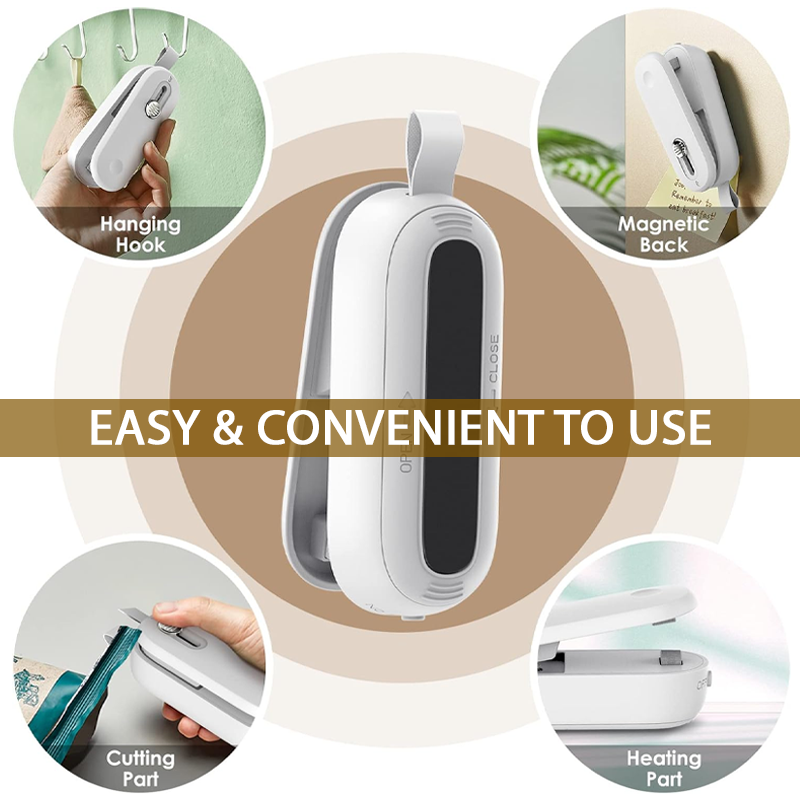 RICPIND™ 2-in-1 Heat Sealer Cutter locks in freshness with an airtight seal, keeping your snacks crisp and delicious. Designed with a magnetic strip and lanyard, you can stick it to the fridge or hang it on a hook for easy access. No more digging through drawers, just grab, seal, and enjoy fresh food anytime.