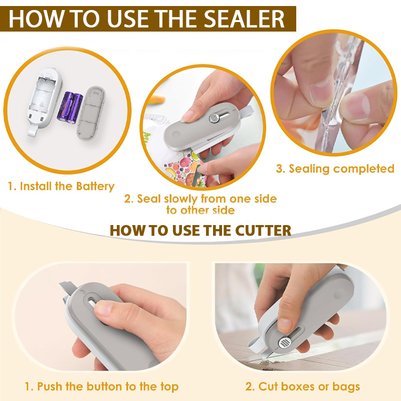 RICPIND™ 2-in-1 Heat Sealer Cutter is your go-to gadget for keeping snacks fresh and mess-free anywhere you go. Seal it up for later or slice it open in seconds with the built-in cutter, no scissors needed. Compact, convenient, and always ready, it is the perfect fix for stale chips and torn packages