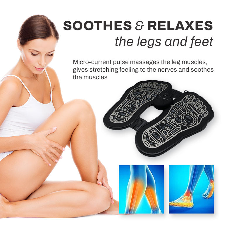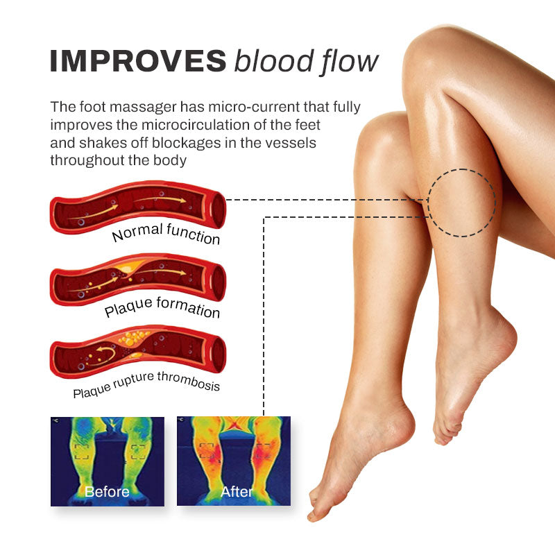 - Improve blood circulation, relieve muscle tension, tired feet, neuropathy, chronic nerve pain and plantar fasciitis. Stimulate the muscles of the feet and calves with low frequency pulse (EMS) technology to promote blood circulation and relax the feet. Vibrate Massage Stimulate your foot and promote blood circulation to relieve your tired
