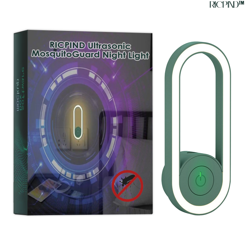 RICPIND Ultrasonic MosquitoGuard Night Light transforms your nights into peaceful retreats by utilizing advanced ultrasonic technology to keep mosquitoes at bay, offering a chemical-free and eco-friendly alternative to traditional insect repellents. With its quiet operation and the added bonus of a soothing night light feature, it not only ensures an undisturbed night's sleep but also enhances the ambiance of your bedroom. Experience bug-free, serene nights with this essential addition to your home.