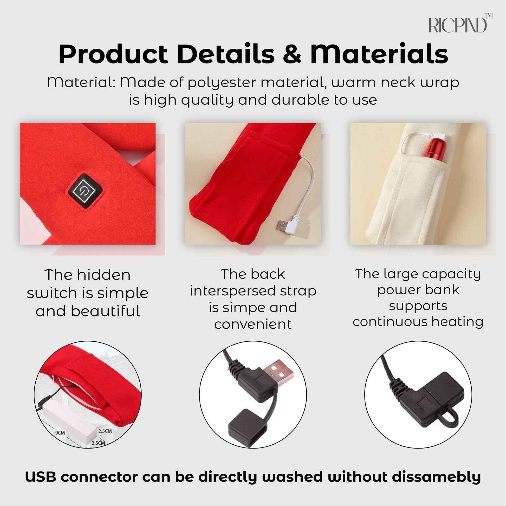 Embrace warmth and relief with RICPIND WarmGlow USB Heated PainReliefScarf, your soothing companion on chilly days!