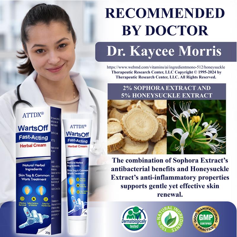 According to Dr. Kaycee Morris of the American Institute of Dermatological Research, ATTDX® WartsOff Fast-Acting Herbal Cream is formulated with 2% Sophora Extract and 5% Honeysuckle Extract, both known for their skin-soothing and clarifying properties.In a study conducted on October 17, 2024, patients who applied the gel consistently reported a significant reduction in mole and spot appearance within two weeks, with minimal irritation.